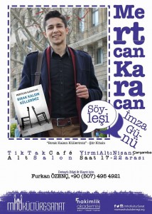 Bu ay yayımlanan “Bırak Kalsın Küllerimiz” adlı şiir kitabıyla Mertcan Karacan, Marmara Hukuk Derneği’yle buluşacaktır. Yeni eseri üzerine söyleşi yapmak için mhdKültür&Sanat katılımcılarıyla bir araya gelecek ve eserini imzalayacaktır. Söyleşi ve imza gününün ardından şiir gecesi gerçekleştirilecektir.